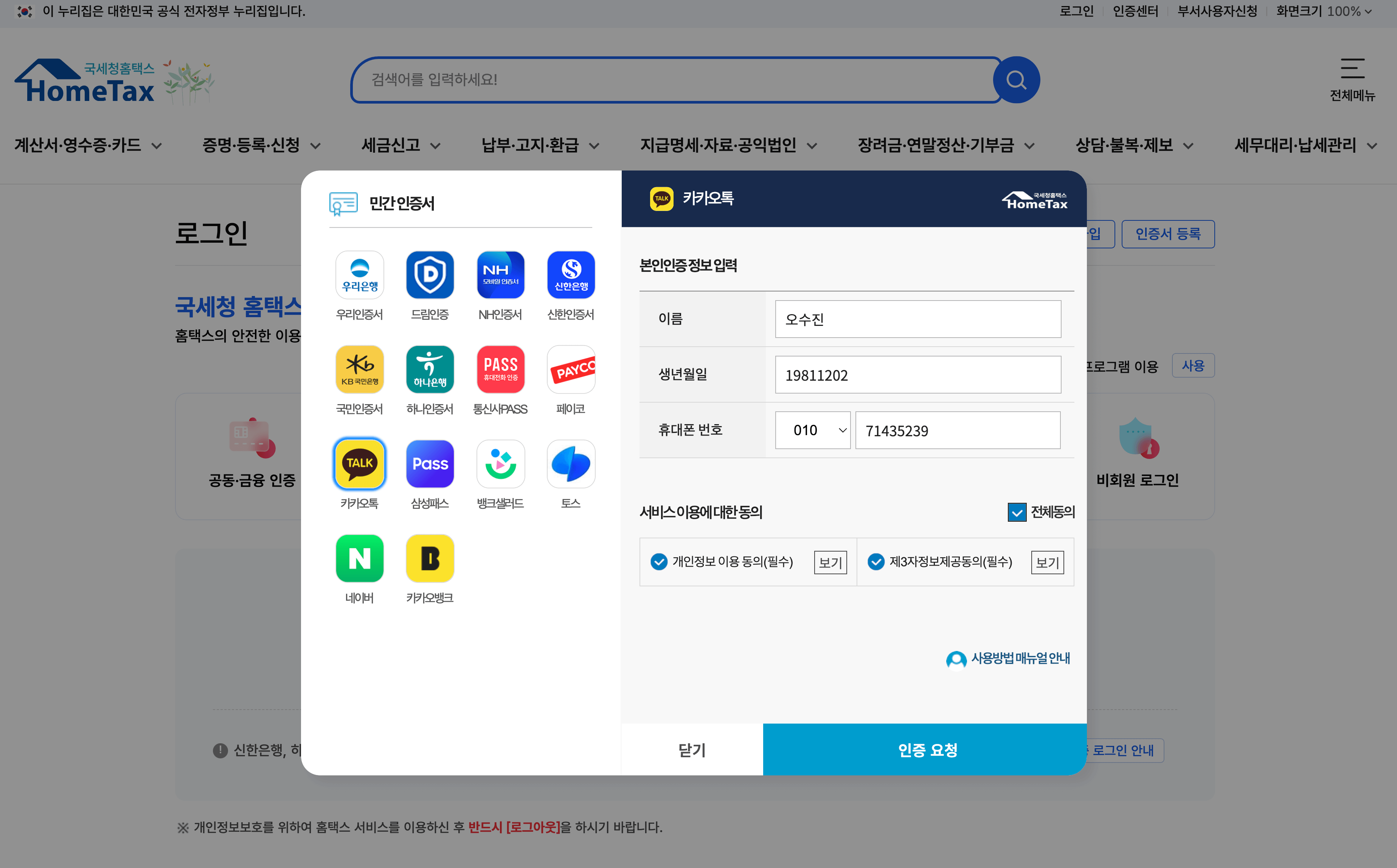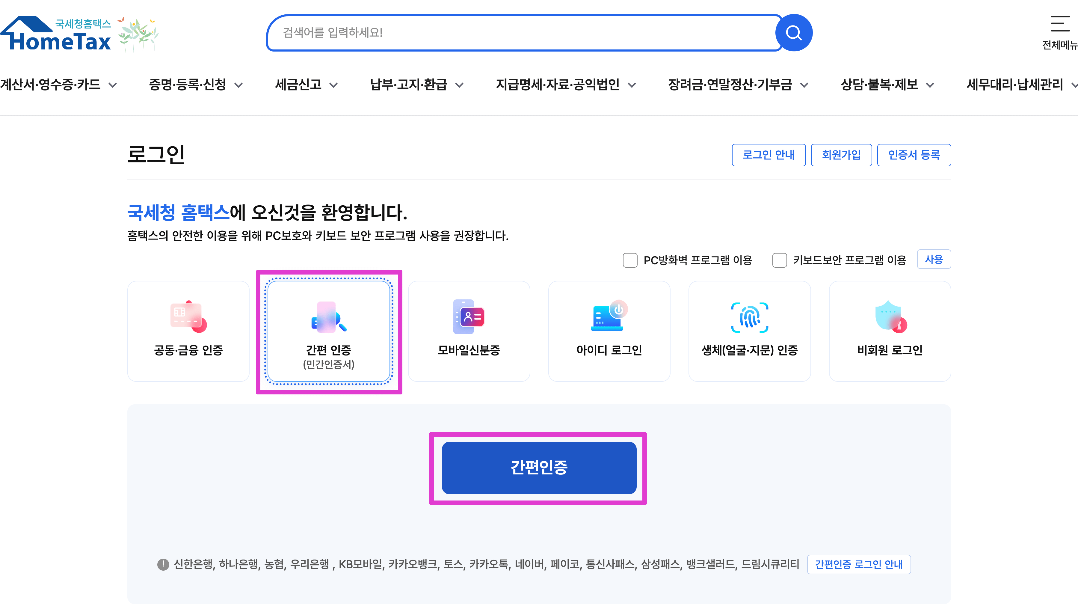 - 홈택스 이용 시: 공인인증서나 간편인증 필요