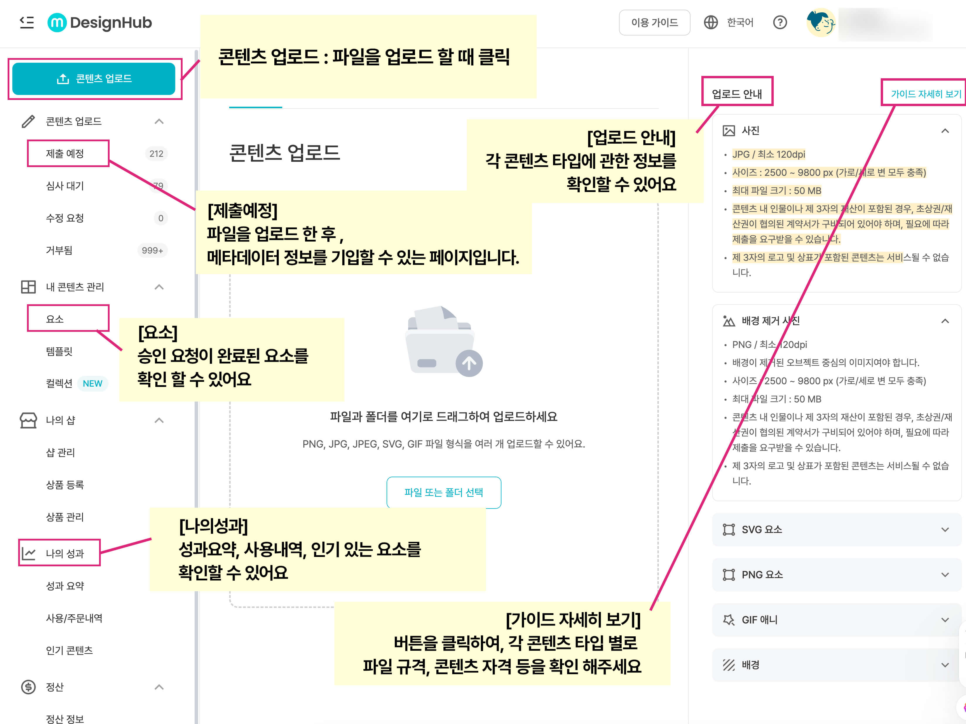 2) 미리캔버스 콘텐츠 업로드 가이드를 확인한다. 어렵지 않으니 정독으로 3~4번 볼 것을 추천합니다.