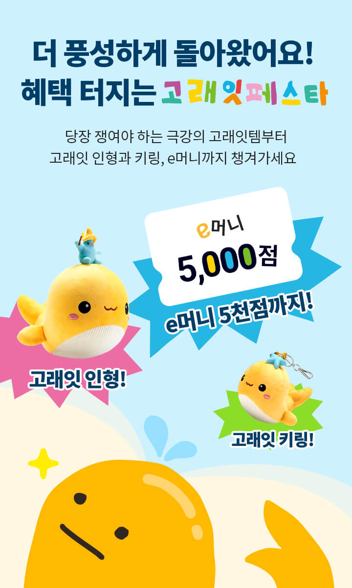 - 고래잇 e머니 5,000점: 10만 원 이상 결제 시 증정 (선착순 15만 명)