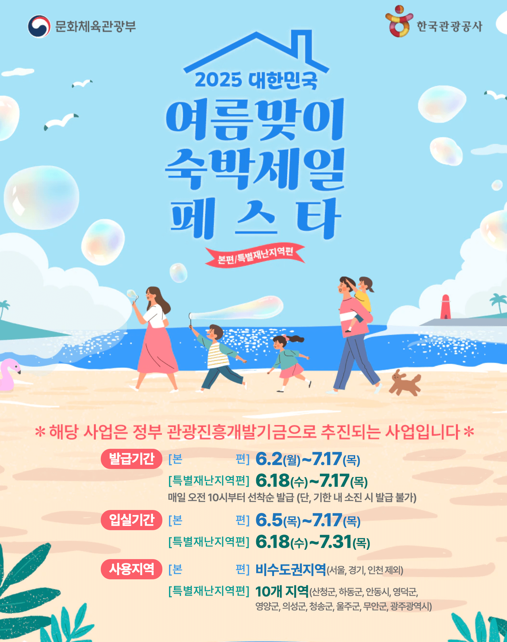 여름 여행을 계획 중이신가요? 그렇다면 '2025 대한민국 숙박대전 페스타'를 주목하세요! 문화체육관광부와 한국관광공사가 주최하는 이번 페스타는 전국 숙박시설을 대상으로 다양한 할인 혜택을 제공합니다. 특히 수도권 외 지역의 숙박을 예약하시는 분들께는 최대 5만 원의 할인 쿠폰이 제공되어, 알뜰한 여행을 즐기실 수 있습니다. 이번 기회를 통해 국내 여행의 매력을 재발견해보세요!