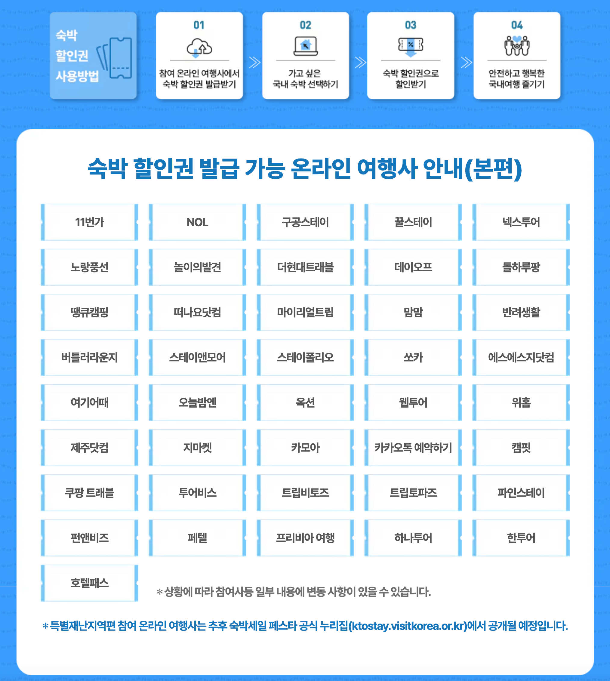 | 유형 1 | 수도권 및 세종시 제외 지역 숙박시설 | 할인 쿠폰 적용 가능 |