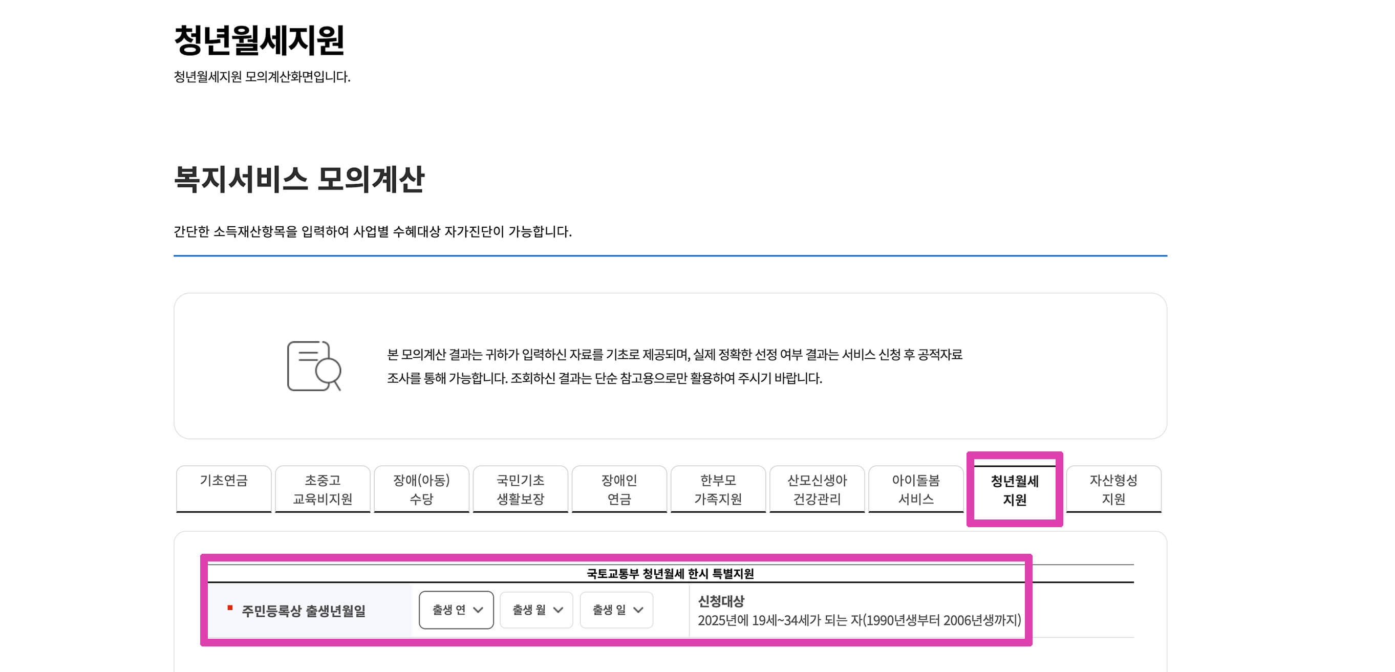 - 연령 요건: 만 19~34세 이하 청년(2025년 기준 1990년~2006년생)