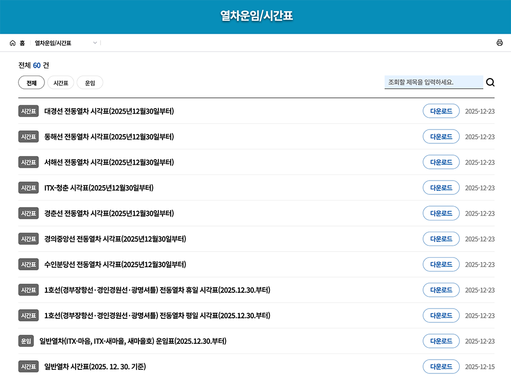 | 서울-부산 | 2시간 15분 | 59,800원 |