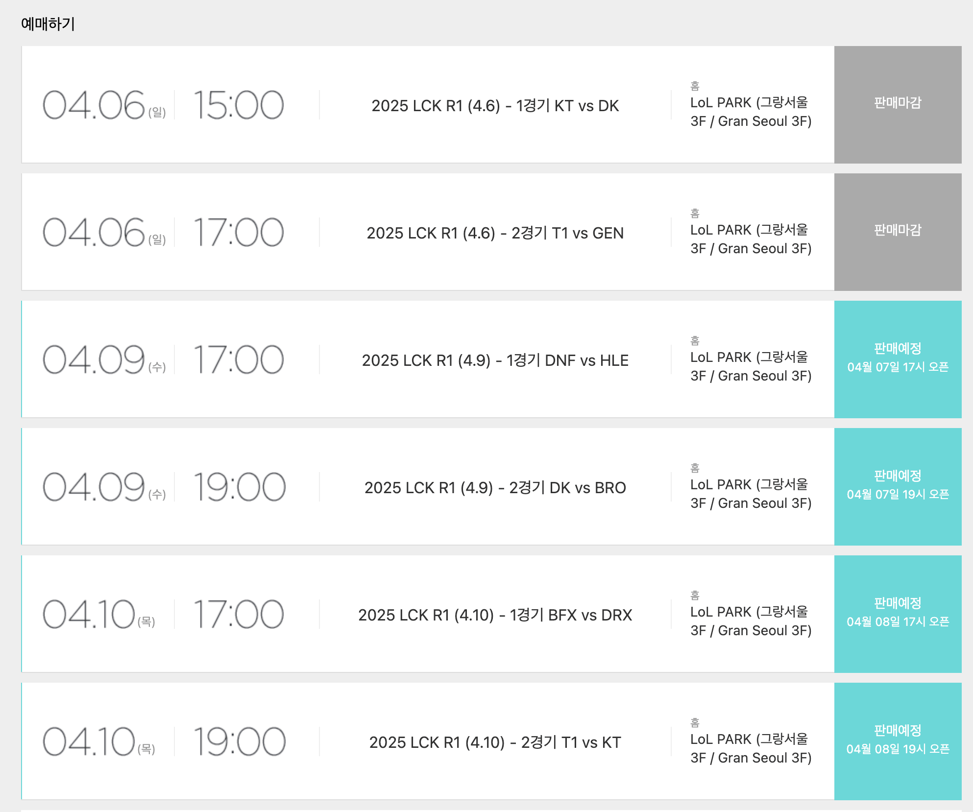 예매에 불편이 없도록 정리했습니다. 기회 놓치지 마시고 성공적인 LCK 예매하세요!